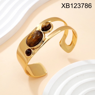 Level B Stainless Steel New Trendy Women Jewelry Golden Open Bangle;Bangle size can be adjusted freely