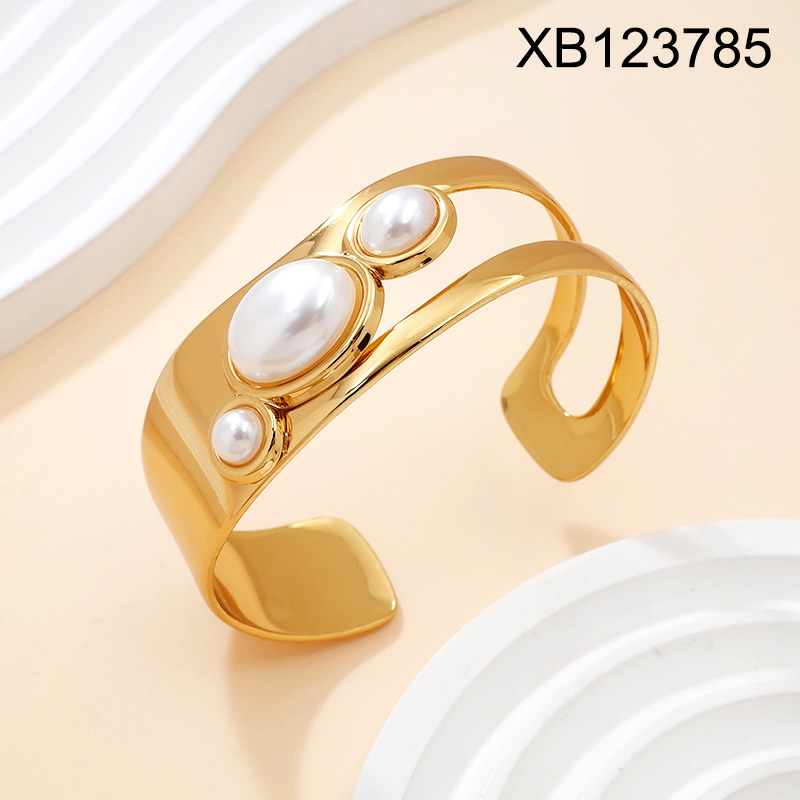Home > Stainless Steel Bracelets > Hot Bracelet > Level B Stainless Steel New Trendy Women Jewelry Pearl Style/Plastic Beads Golden Open Bangle;Bangle size can be adjusted freely