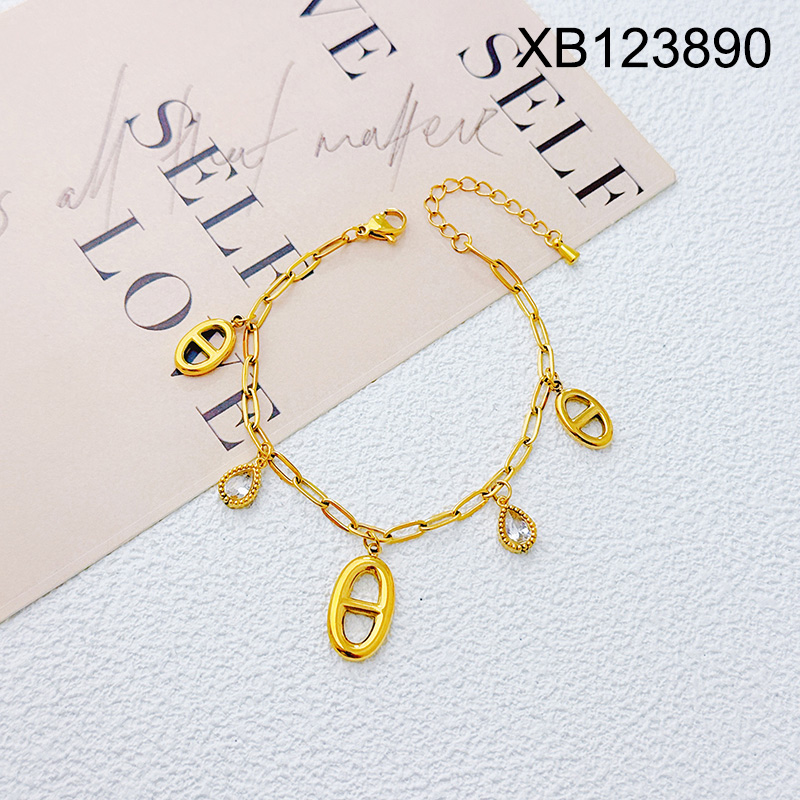 Level B Stainless Steel New Trendy Women Jewelry Oval Pig nose Golden Bracelet