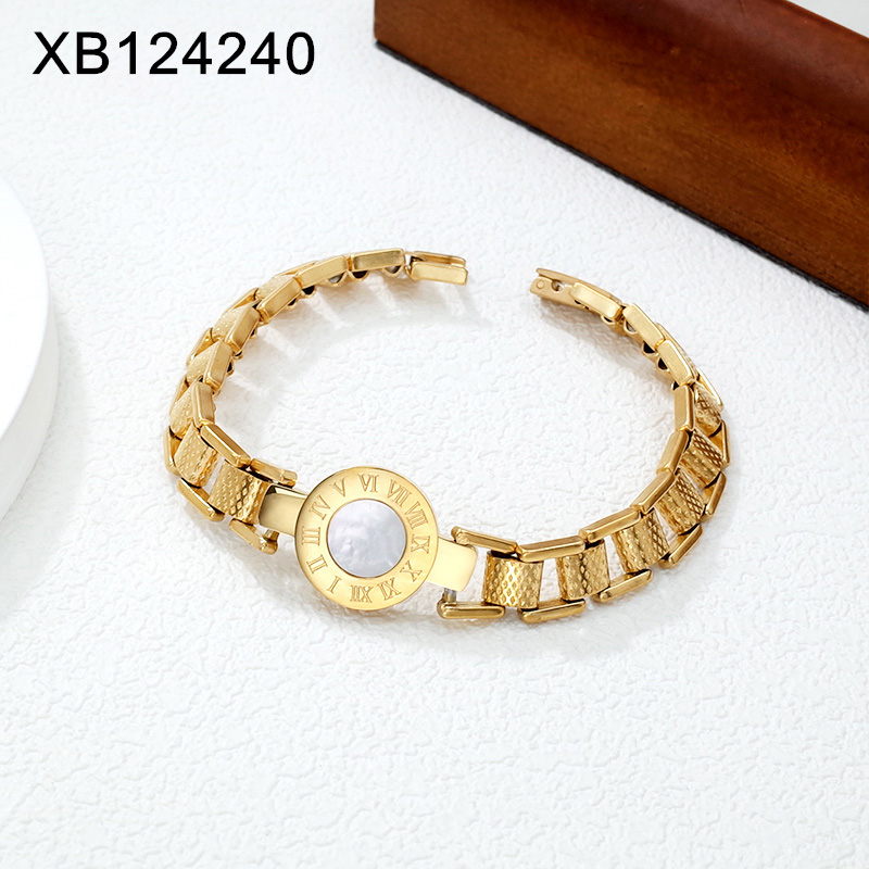 Home > Stainless Steel Bracelets > Hot Bracelet > Level B Stainless Steel New Trendy Women Jewelry Roman Numeral Golden Bracelet