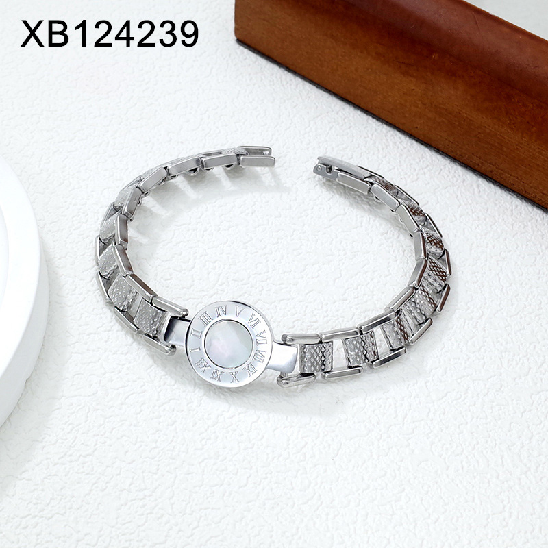 Level B Stainless Steel New Trendy Women Jewelry Roman Numeral Steel color Bracelet