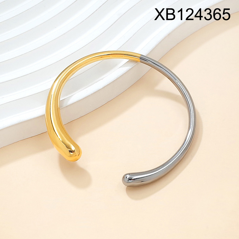 Level B Stainless Steel New Trendy Women Jewelry Two Tone Open Bangle;Bangle size can be adjusted freely