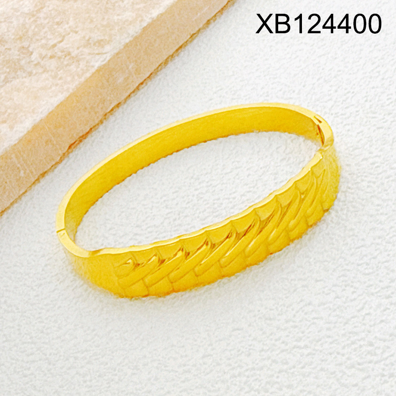 Home > Stainless Steel Bracelets > Hot Bracelet > Level B Stainless Steel New Trendy Women Jewelry Golden Bangle