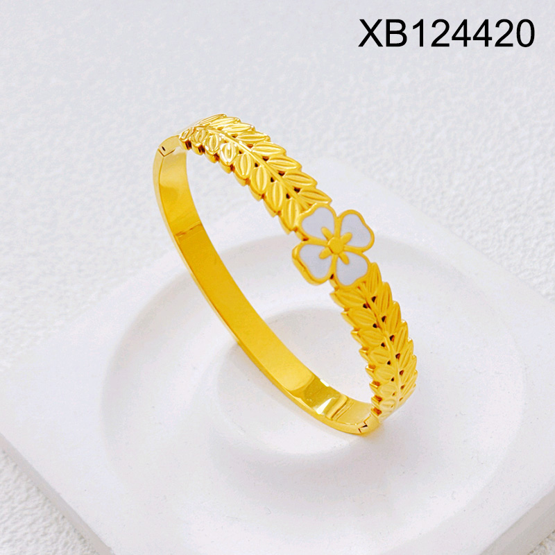 Level B Stainless Steel New Trendy Women Jewelry Ear of wheat Flower Golden Bangle