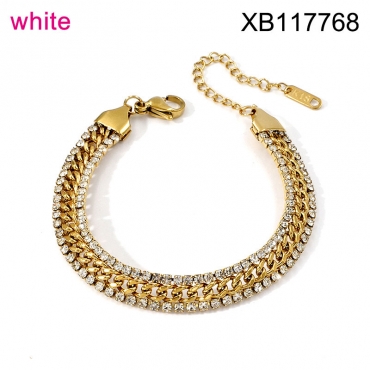 Home > Stainless Steel Bracelets > Hot Bracelet > Level B Stainless Steel New Trendy Women Jewelry White Rhinestone Golden Bracelet