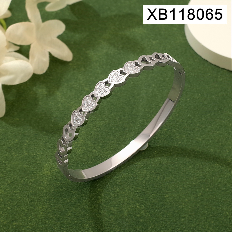 Level B Stainless Steel New Trendy Women Jewelry Heart Steel color Valentine's Day CNC Bangle