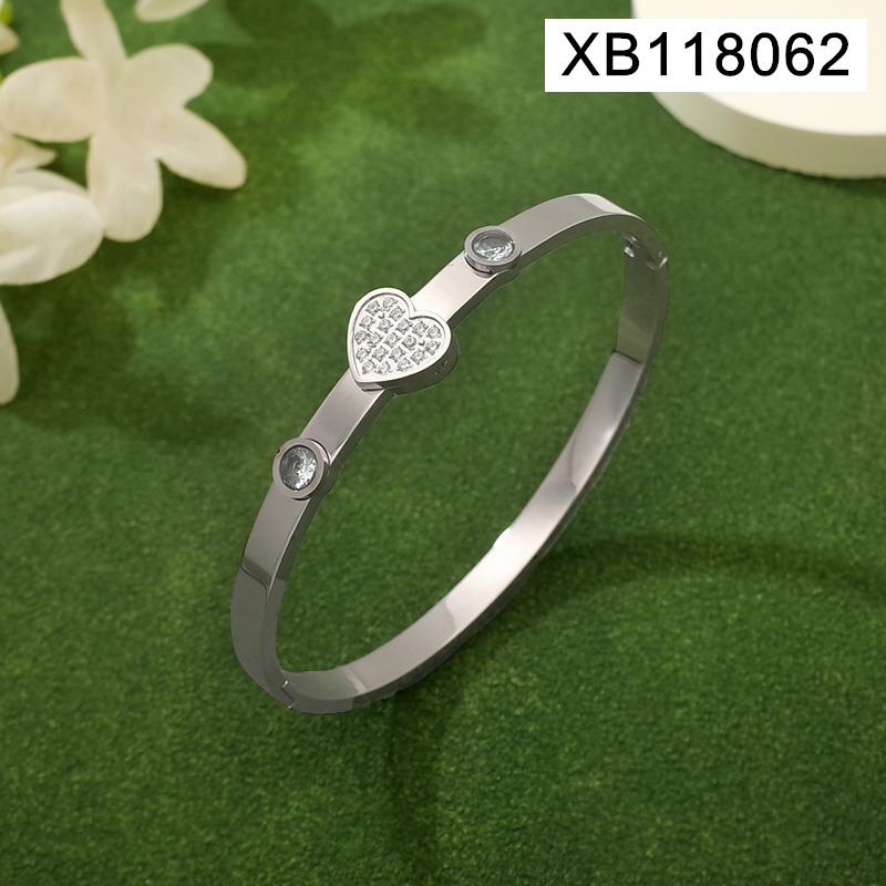 Level B Stainless Steel New Trendy Women Jewelry Heart Steel color Valentine's Day CNC Bangle