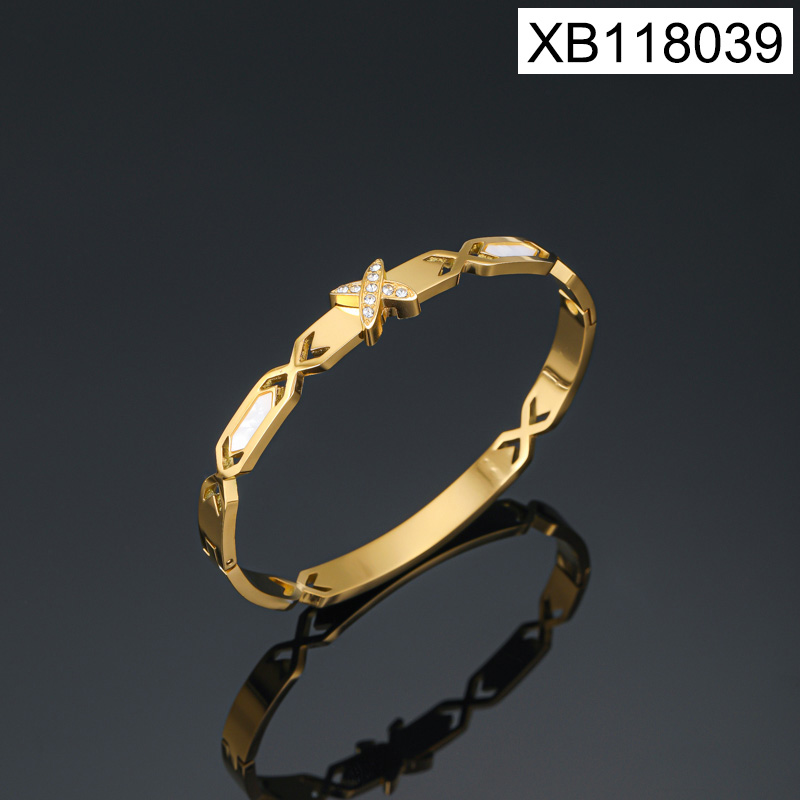 Level B Stainless Steel New Trendy Women Jewelry Sticky Stone Letter X Golden Bangle