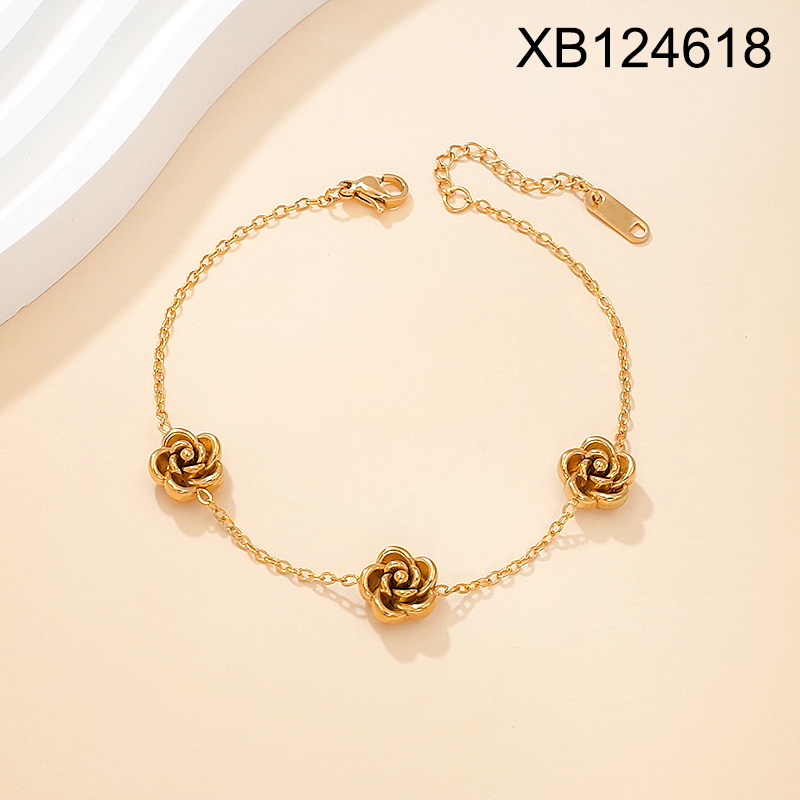 Home > Stainless Steel Bracelets > Hot Bracelet > Level B Stainless Steel New Trendy Women Jewelry Flower Golden Bracelet