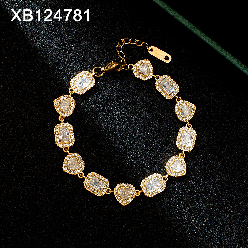 Level B Stainless Steel New Trendy Women Jewelry White Rhinestone Rectangle Heart Golden Bracelet