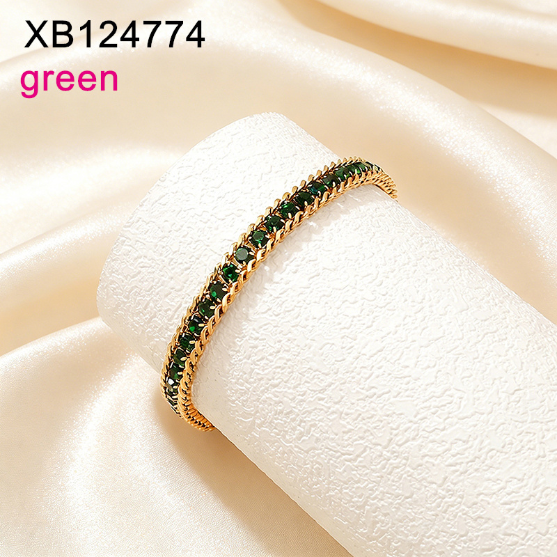 Level B Stainless Steel New Trendy Women Jewelry Green Rhinestone Golden Bracelet