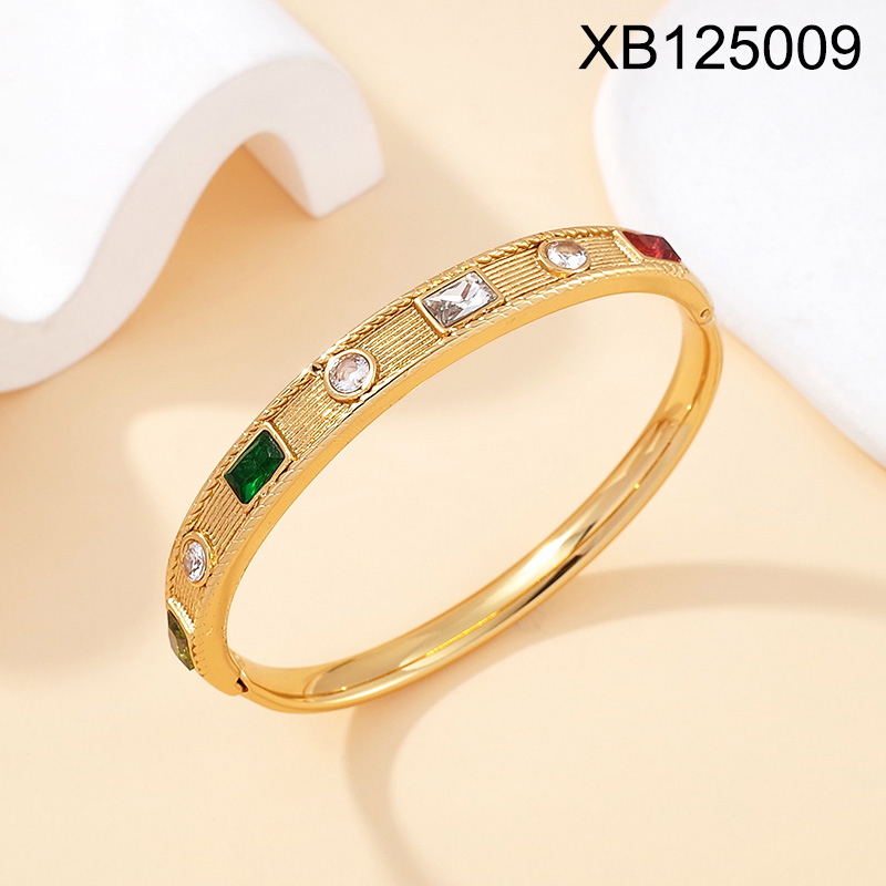 Level B Stainless Steel New Trendy Women Jewelry Mixed color Zircon Golden Bangle