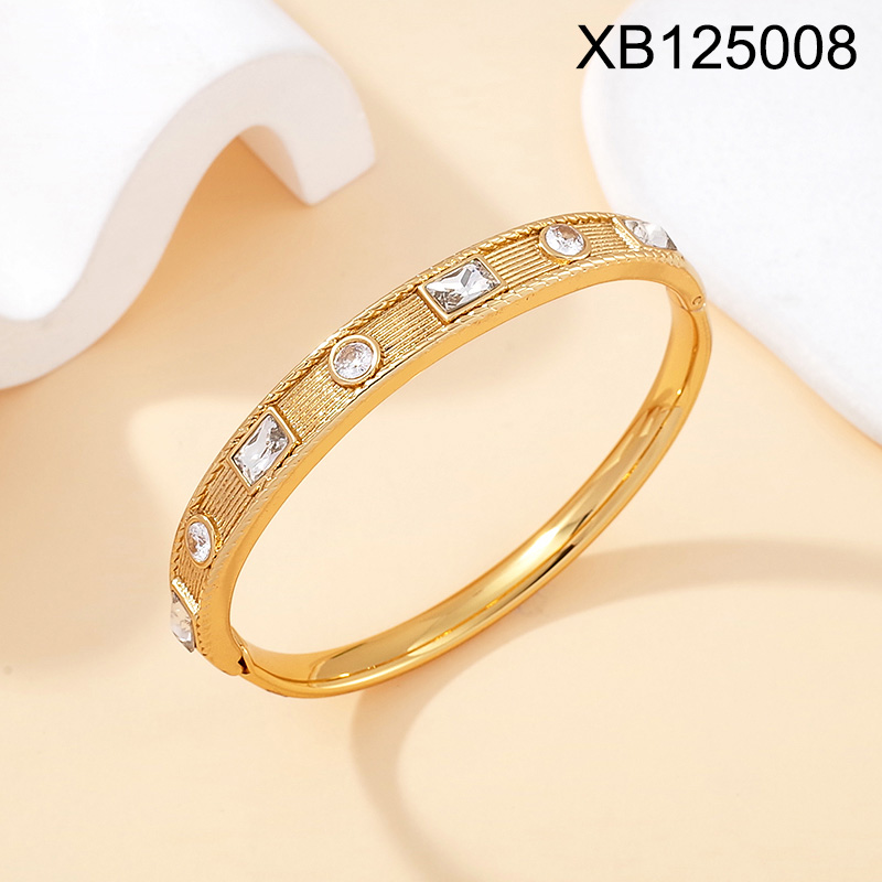 Home > Stainless Steel Bracelets > Hot Bracelet > Level B Stainless Steel New Trendy Women Jewelry White Zircon Golden Bangle