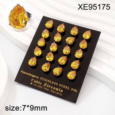 > Level A Stainless Steel Jewelry Hot Sale Steel color Golden yellow Water Drip Zircon Earrings