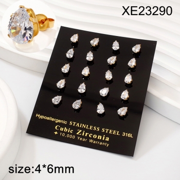 > Level A Stainless Steel Jewelry Hot Sale Golden White Water Drip zirconium Earrings