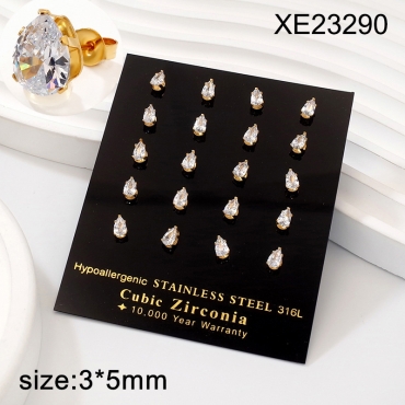> Level A Stainless Steel Jewelry Hot Sale Golden White Water Drip zirconium Earrings