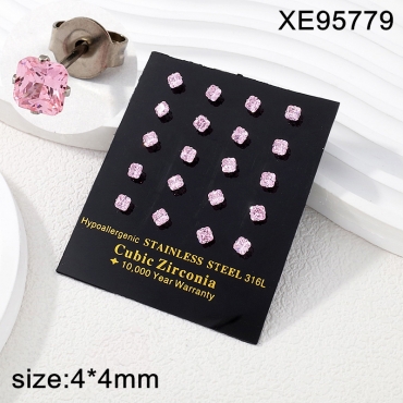 Home > Stainless Steel Earrings > Hot Earrings > Level A Stainless Steel Jewelry Steel color Pink Square Square Rounded Corner Zircon Earrings