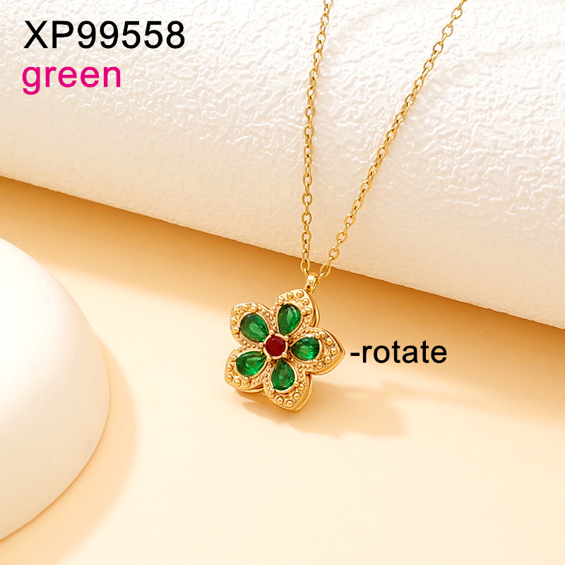 > Level B Stainless Steel New Trendy Women Jewelry Golden Can Rotate Green Zircon Bauhinia flowers Pendant