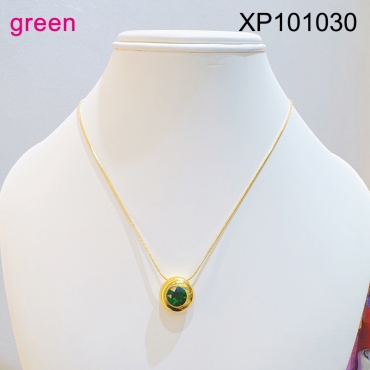 > Level B Stainless Steel New Trendy Women Jewelry Round Green Glass zirconium Golden Pendant