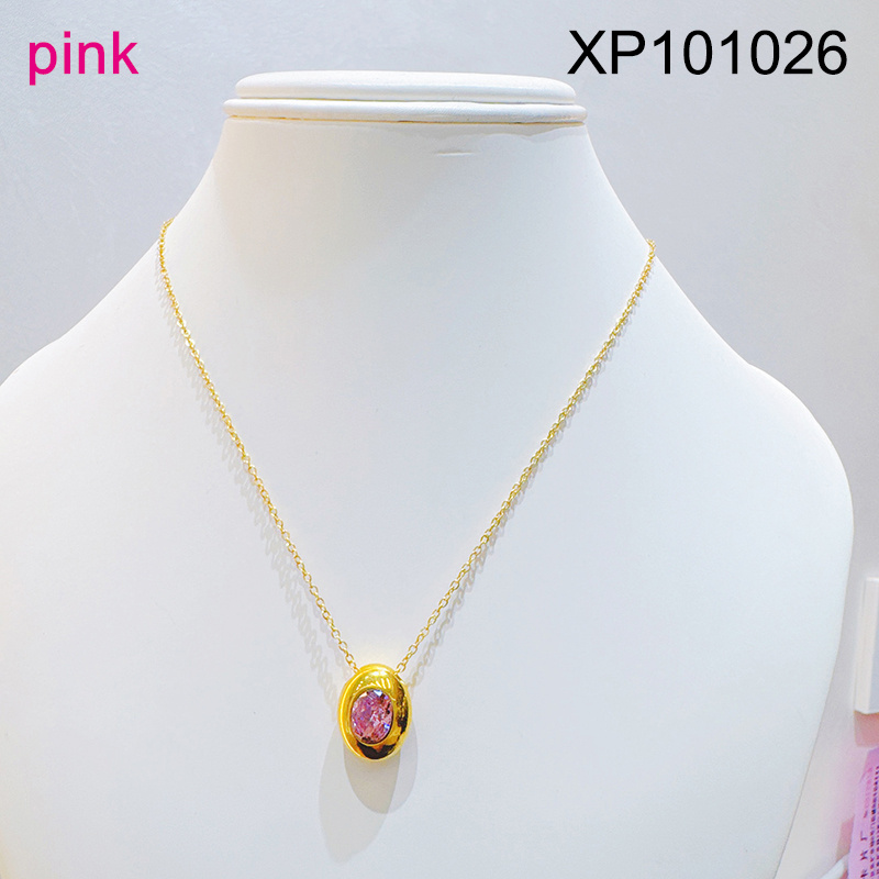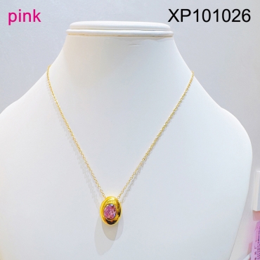 > Level B Stainless Steel New Trendy Women Jewelry Oval Pink Glass zirconium Golden Pendant