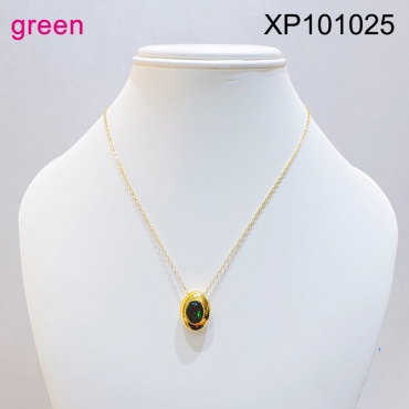 > Level B Stainless Steel New Trendy Women Jewelry Oval Green Glass zirconium Golden Pendant