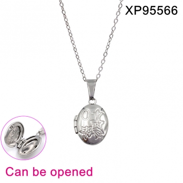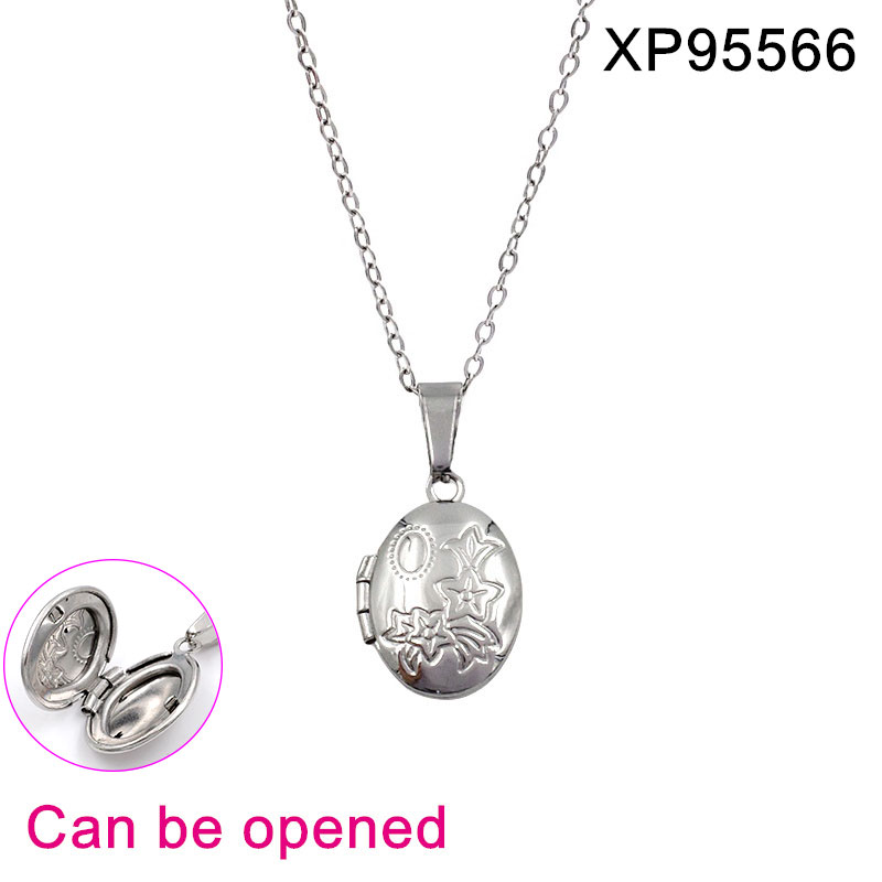 Home > Stainless Steel Pendants > Hot Pendant > Level B Stainless Steel Jewelry New Trendy Carved Oval Openable Photo Frame Pendant