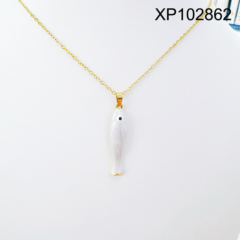 Level B Stainless Steel New Trendy Women Jewelry Summer beach Drip Oil/Enamel Animal Fish Golden Pendant
