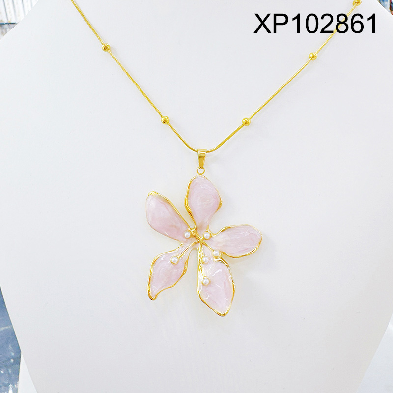 Home > Stainless Steel Pendants > Hot Pendant > Level B Stainless Steel New Trendy Women Jewelry Drip Oil/Enamel Flower Golden Pendant