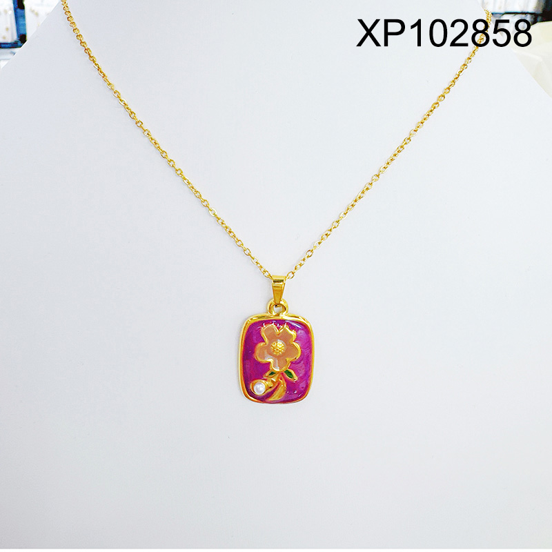 Home > Stainless Steel Pendants > Hot Pendant > Level B Stainless Steel New Trendy Women Jewelry Drip Oil/Enamel Rectangle Flower Golden Pendant