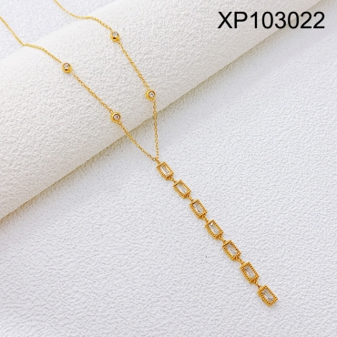 Level B Stainless Steel New Trendy Women Jewelry Rectangle White Crystal zirconium Golden Pendant