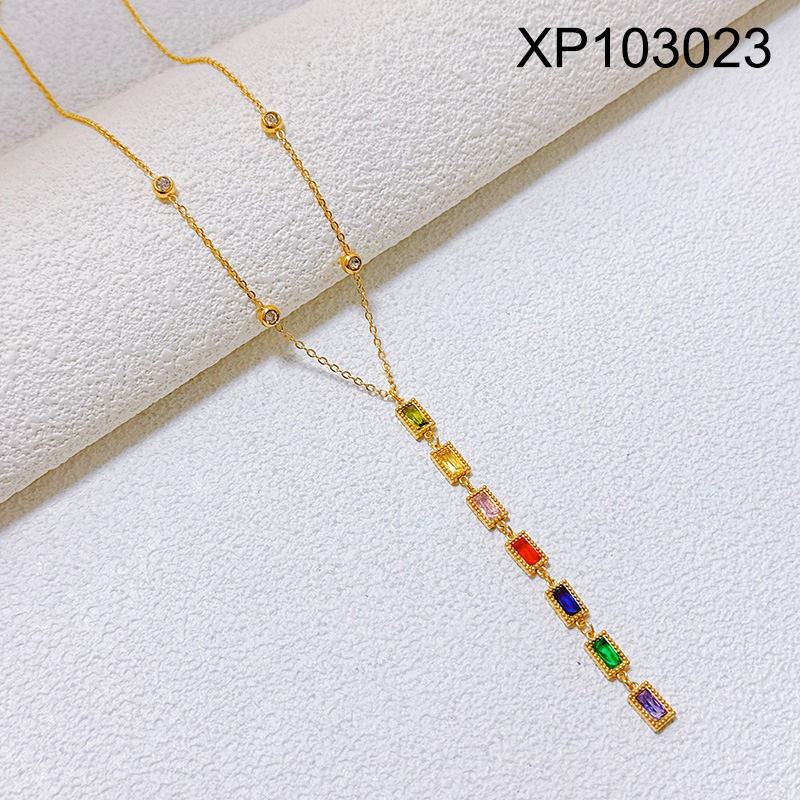 Level B Stainless Steel New Trendy Women Jewelry Rectangle Mixed color Crystal zirconium Golden Pendant
