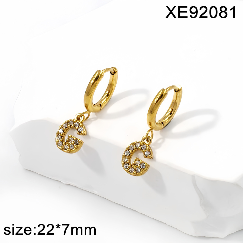 Home > Letter Jewelry > Hot Letter Jewelry > Level B Stainless Steel Jewelry New Trendy Sticky Stone Letter G Golden Hoop Earrings