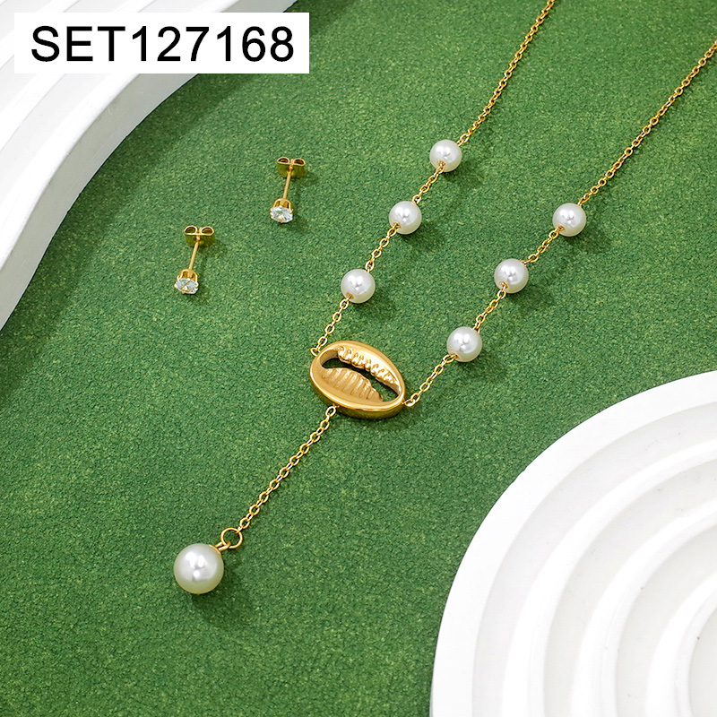 Home > Stainless Steel Sets > Imitation Pearl Sets > Level B Stainless Steel New Trendy Women Jewelry Pearl Style/Plastic Beads Summer beach Animal Starfish Golden SET