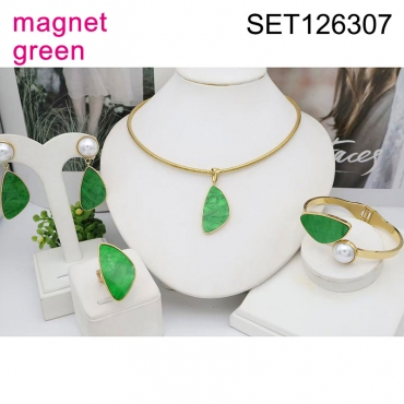 Level B Stainless Steel New Trendy Women Jewelry Green Triangle Golden Magnet buckle 4pcs SET