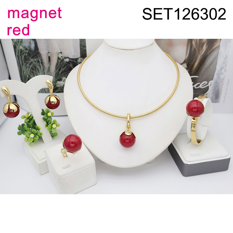 Level B Stainless Steel New Trendy Women Jewelry Pearl Style/Red Plastic Beads Golden Magnet buckle 4pcs SET