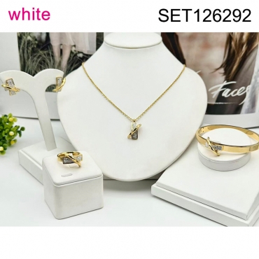Level B Stainless Steel New Trendy Women Jewelry Clay Sticky White Rhinestone Golden 4pcs SET
