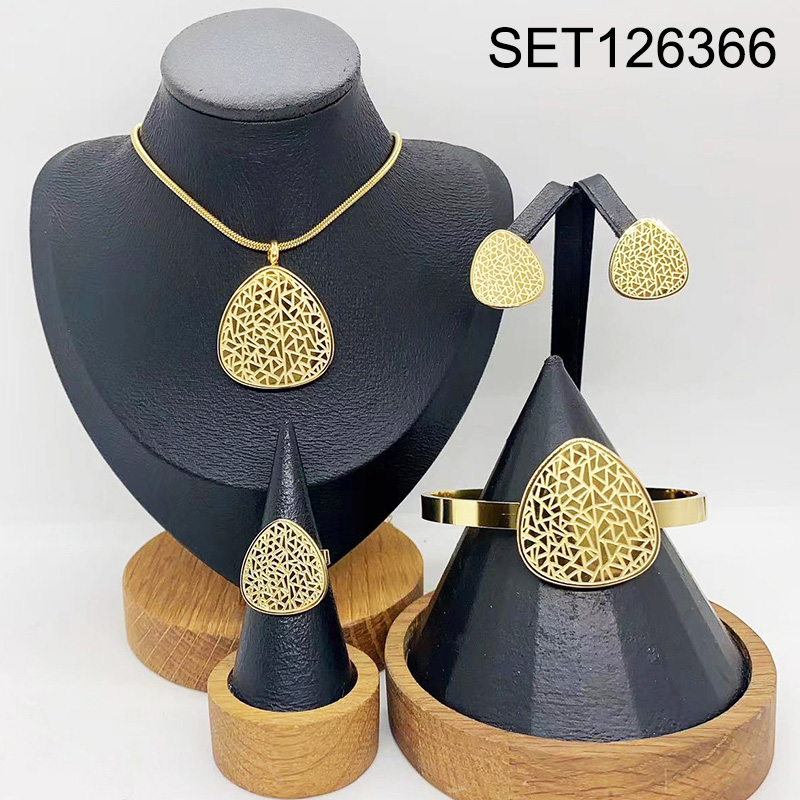 Home > Stainless Steel Sets > 4pcs Sets > Level B Stainless Steel New Trendy Women Jewelry Water Drip Golden 4pcs SET