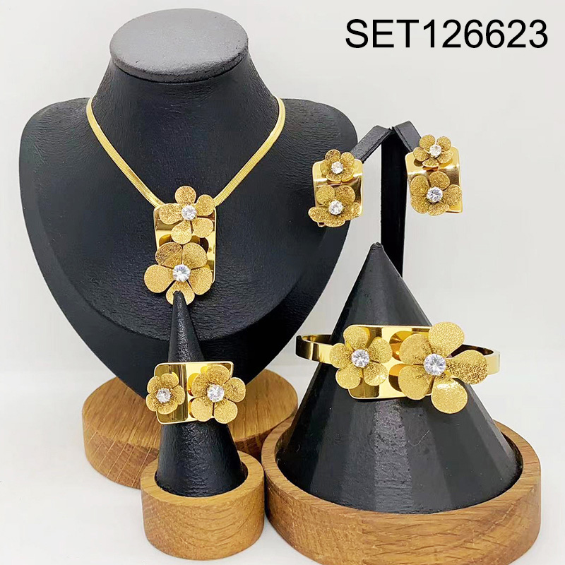 Level B Stainless Steel New Trendy Women Jewelry Flower Golden 4pcs SET