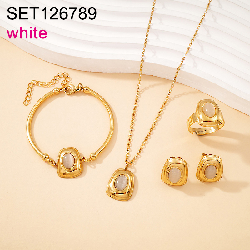 Home > Stainless Steel Sets > 4pcs Sets > Level B Stainless Steel New Trendy Women Jewelry White Opal Geometry Golden 4pcs SET