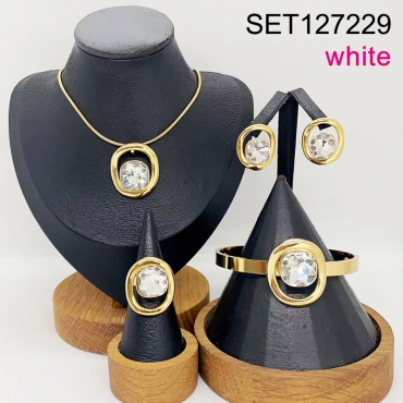Level B Stainless Steel New Trendy Women Jewelry White Square Glass Golden 4pcs SET