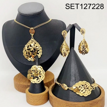 Home > Stainless Steel Sets > 4pcs Sets > Level B Stainless Steel New Trendy Women Jewelry Water Drip Golden 4pcs SET