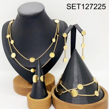 Level B Stainless Steel New Trendy Women Jewelry Round Golden 4pcs SET