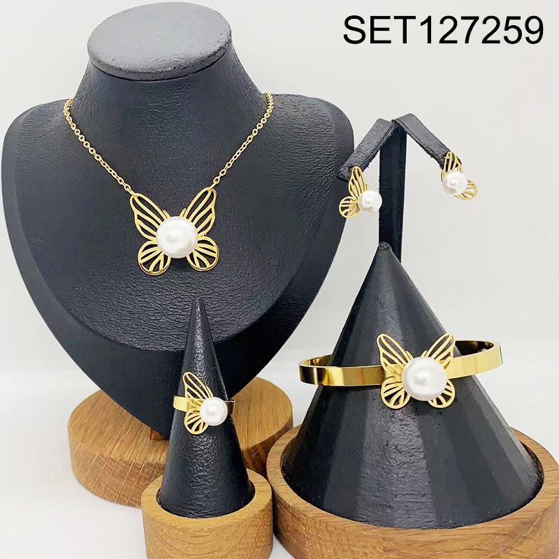 Level B Stainless Steel New Trendy Women Jewelry Pearl Style/Plastic Beads Animal Butterfly Golden 4pcs SET