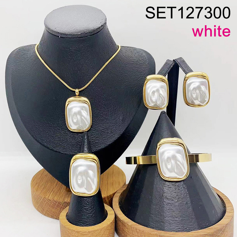 Level B Stainless Steel New Trendy Women Jewelry Rectangle Golden 4pcs SET