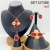 Level B Stainless Steel New Trendy Women Jewelry Red Stone Oval Golden 4pcs SET