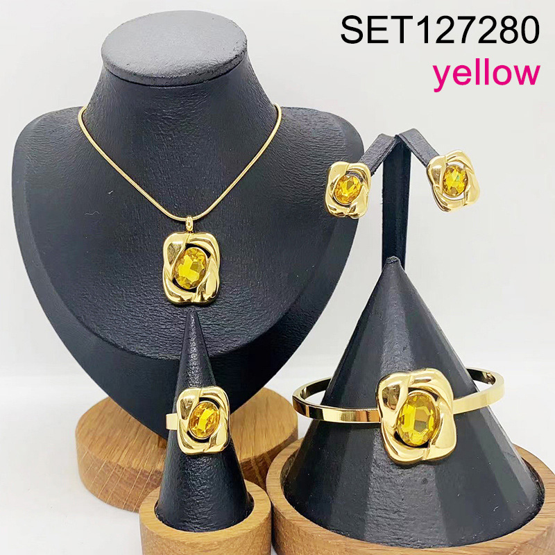Level B Stainless Steel New Trendy Women Jewelry Yellow Stone Geometry Golden 4pcs SET