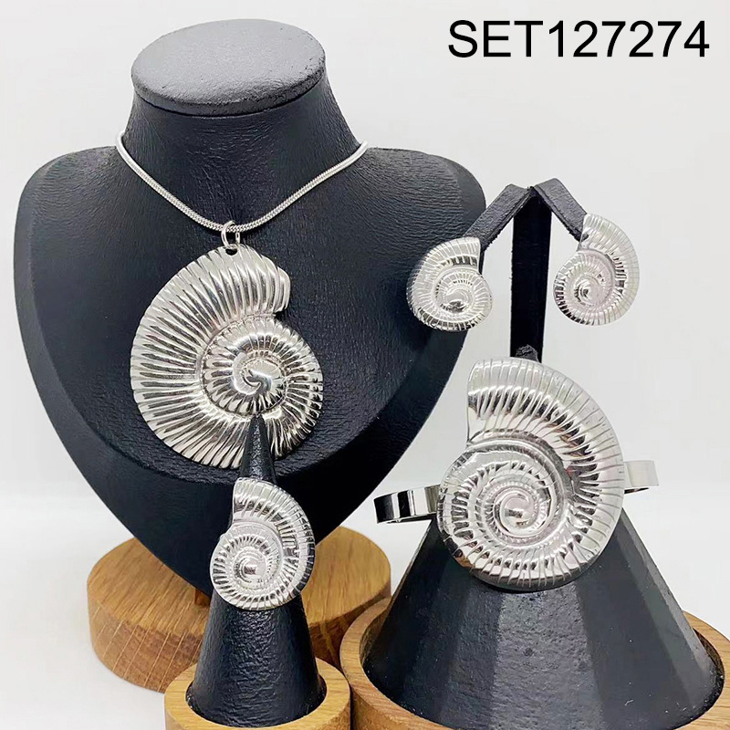 Level B Stainless Steel New Trendy Women Jewelry Summer beach Animal Conch Steel color 4pcs SET