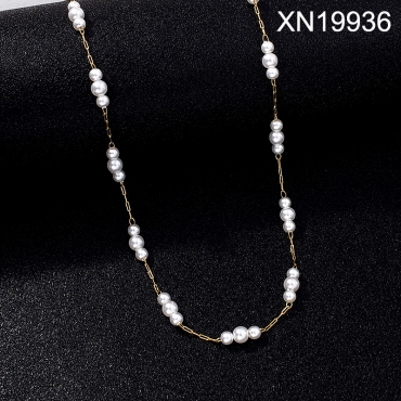 Level B Stainless Steel New Trendy Women Jewelry Pearl Style/Plastic Beads Golden Necklace