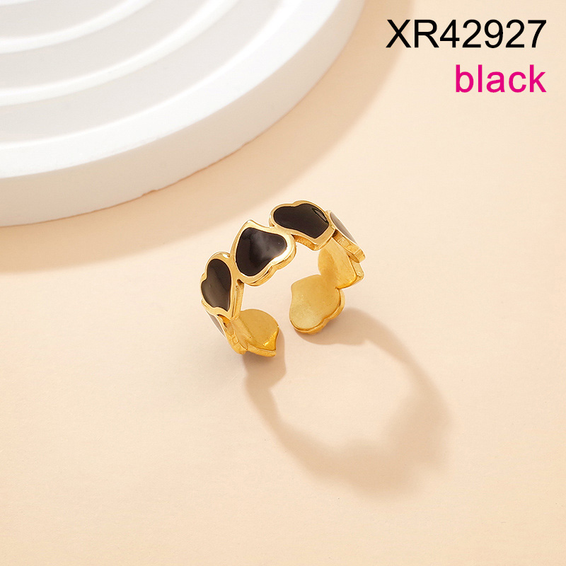 Level B Stainless Steel New Trendy Women Jewelry Drip Oil/Enamel Black Heart Golden Mother's Day Open Rings;Ring size can be adjusted freely