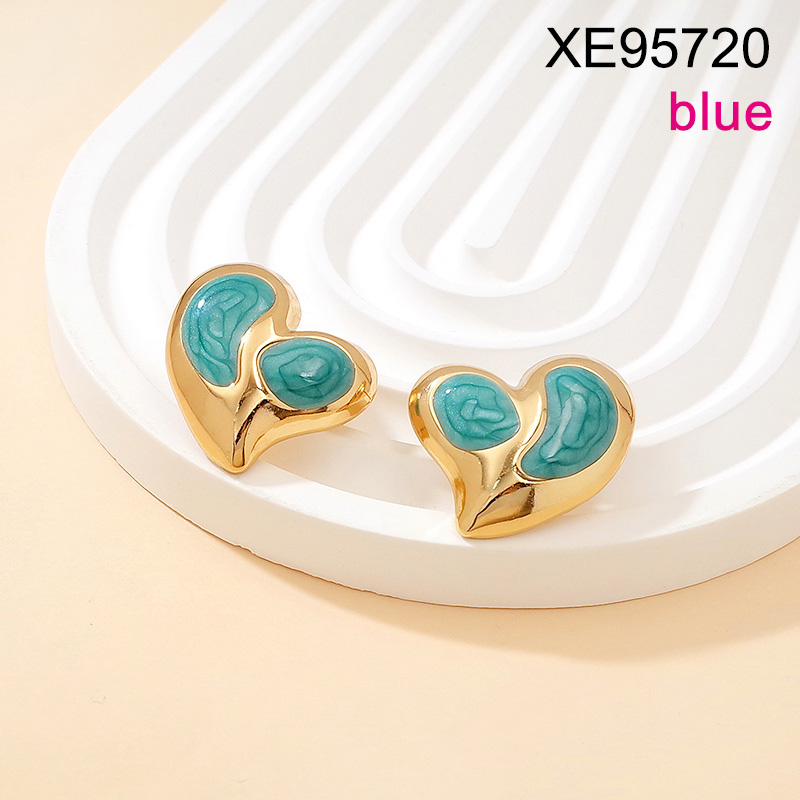 Home > Holiday Jewelry > Level B Stainless Steel New Trendy Women Jewelry Drip Oil/Enamel Blue Heart Golden Mother's Day Earrings